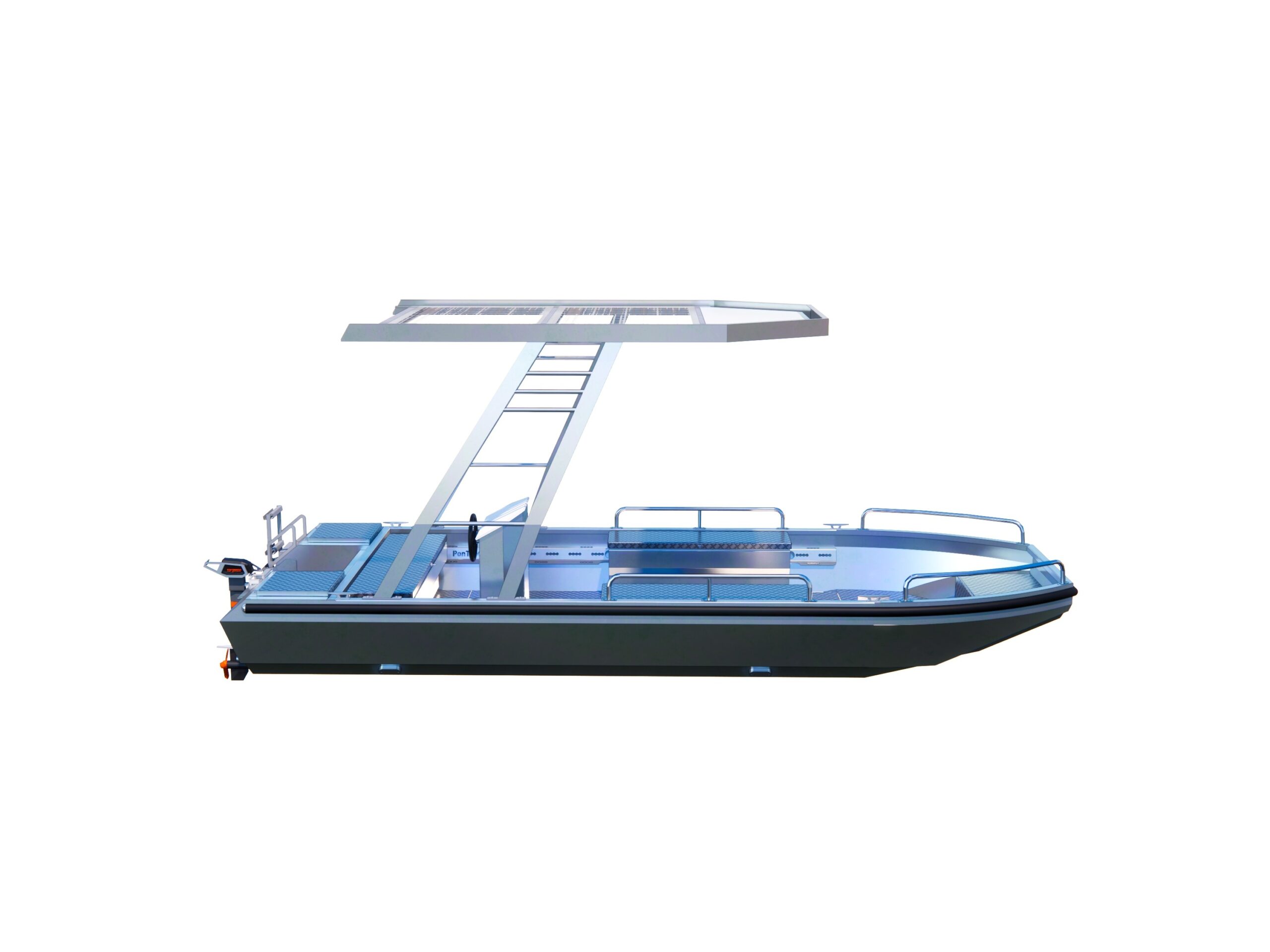 PonTOM® Defender -mallimme eivät ole ainoastaan kestäviä ja erittäin vakaita veneitä, vaan ne tarjoavat myös ympäristöystävällistä liikkuvuutta vesillä aurinkovoiman ansiosta. Kiebitzbergin peräkontit tarjoavat runsaasti säilytystilaa. Alumiinikatto toimii paitsi sateensuojana myös aurinkopaneelien suojana, jotka syöttävät sähköä ajoon.
