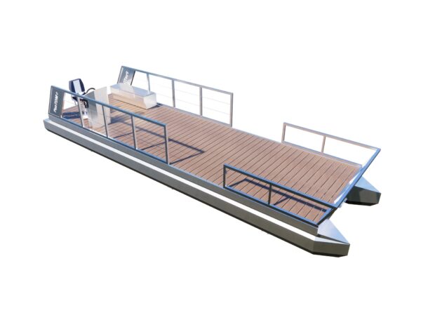 Der PonTOM® Klassik 9 ist mit seinen Maßen 9.00 m Länge x 2.50 m Breite ein großes Pontonboot der Kiebitzberg® Schiffswerft in Havelberg. Wie bei all unseren Klassik Aluminium Plattformen wird ein 2.50 mm starkes Blech verarbeitet. Im Rumpf sind Schotten eingeschweißt.